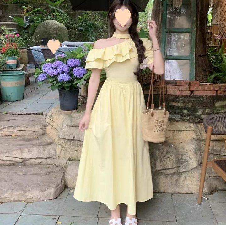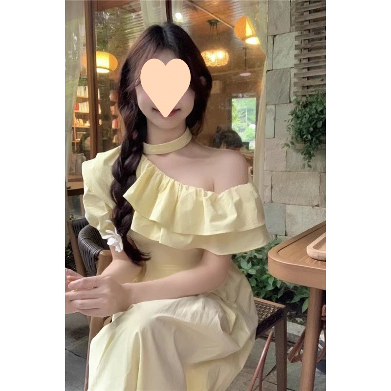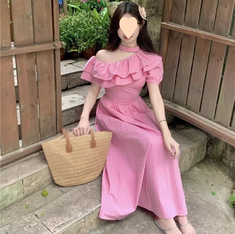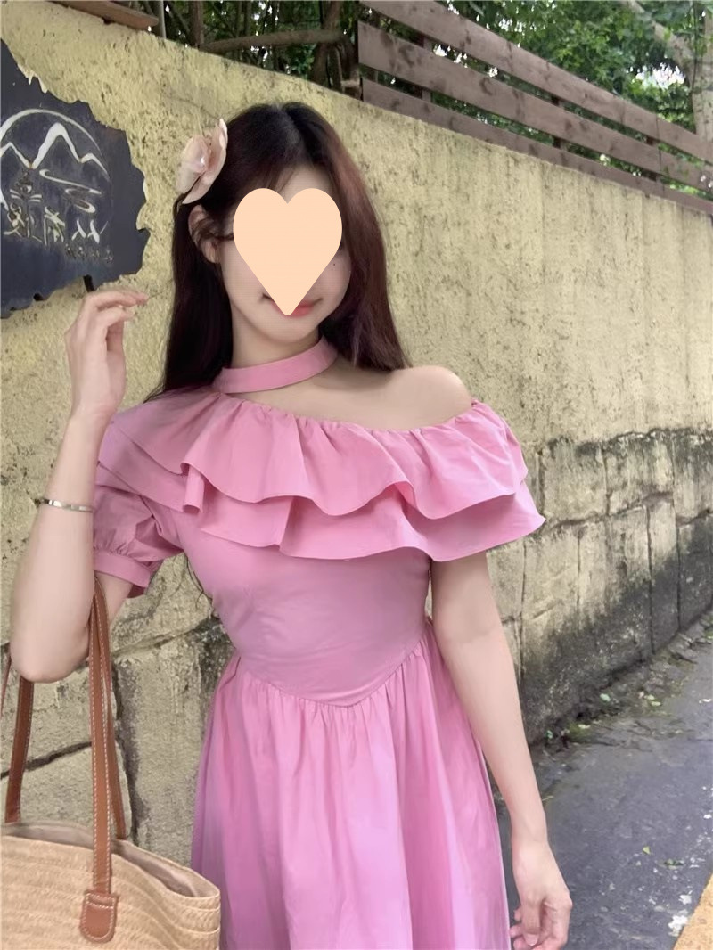 華やかな段々フリルが胸元を彩るオフショルダーデザインのワンピースです。