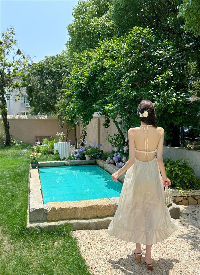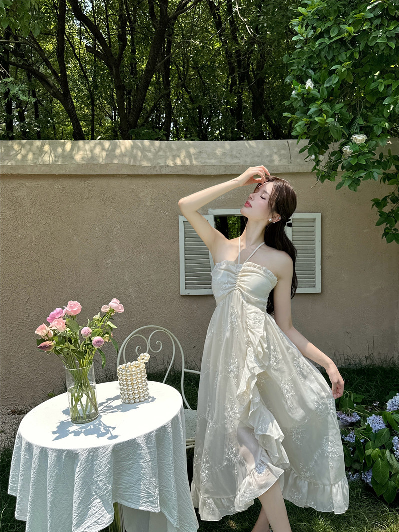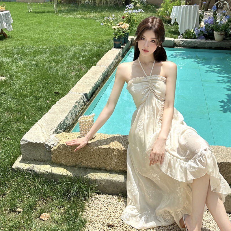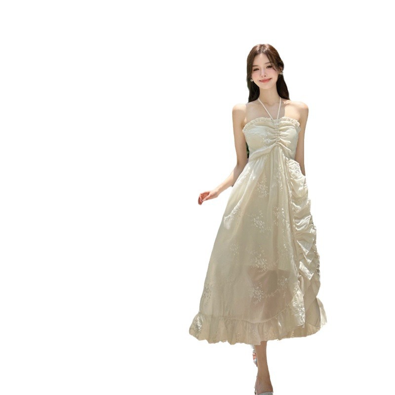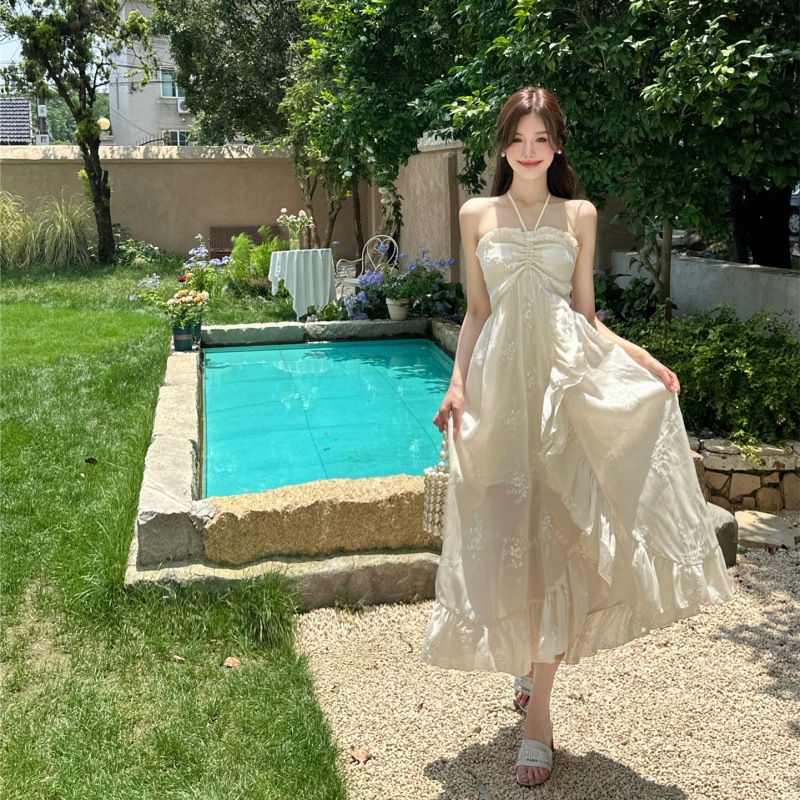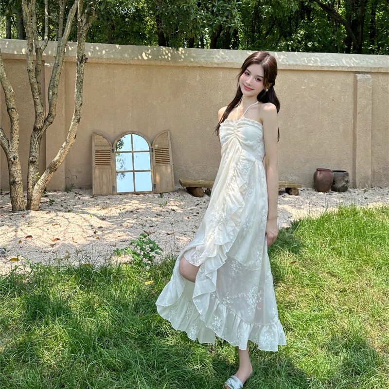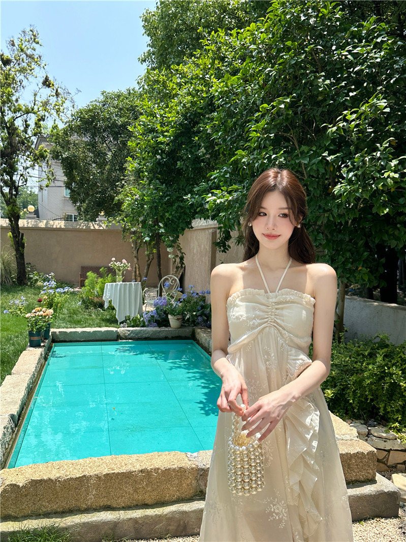 繊細なフリルデザインが美しいホルターネックワンピース。